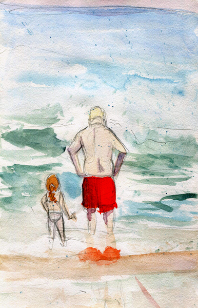 Went to the Outer Banks last week for some beach fun. Here's a quick sketch of a dad and his daughter mesmerized by the waves.